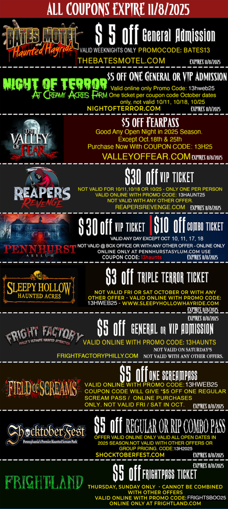 The Philadelphia Area's Best Haunted Attractions are found here at 13haunts.com – Top rated haunted attractions in PA, NJ, and DE.